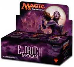 Дисплей бустеров издания Eldritch Moon содержит 36 бустеров. В каждом бустере Вы найдете 15 карт: 1 базовую землю, 10 обычных, 3 необычных и 1 редкую либо мифическую. Кроме того, в каждом пятом бустере можно найти специальную фойловую карту вместо обычной. Также есть возможность найти 1 карту-токен.
