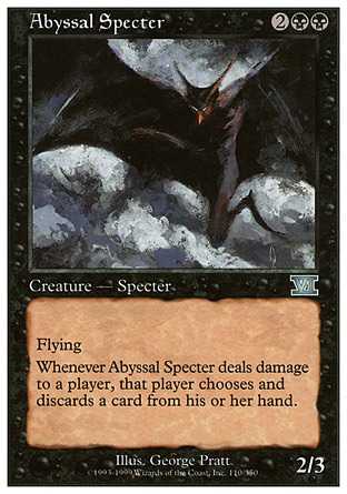 | Card Text | Flying Whenever Abyssal Specter deals damage to a player, that player discards a card. |