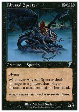 | Card Text | Flying Whenever Abyssal Specter deals damage to a player, that player discards a card. |