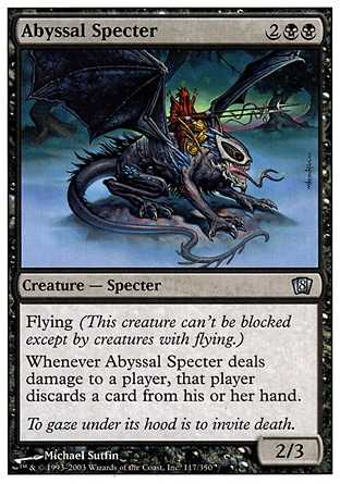 | Card Text | Flying Whenever Abyssal Specter deals damage to a player, that player discards a card. |