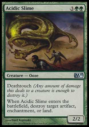 | Card Text | Deathtouch (Any amount of damage this deals to a creature is enough to destroy it.) When Acidic Slime enters the battlefield, destroy target artifact, enchantment, or land. |