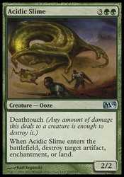 | Card Text | Deathtouch (Any amount of damage this deals to a creature is enough to destroy it.) When Acidic Slime enters the battlefield, destroy target artifact, enchantment, or land. |