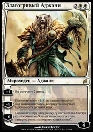 | Card Text | +1: You gain 2 life. в€’1: Put a +1/+1 counter on each creature you control. Those creatures gain vigilance until end of turn. в€’6: Put a white Avatar creature token onto the battlefield. It has |