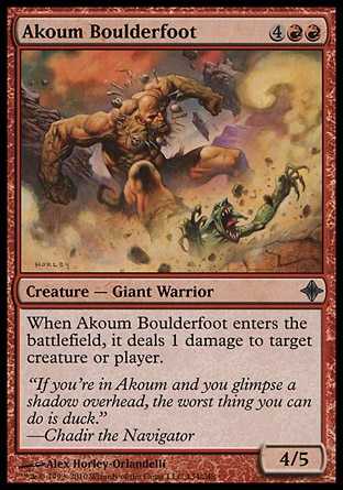 Card TextWhen Akoum Boulderfoot enters the battlefield, it deals 1 damage to target creature or player.