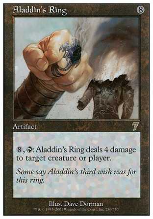 Card Text, : Aladdin"s Ring deals 4 damage to target creature or player.