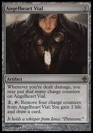 | Card Text | Whenever you"re dealt damage, you may put that many charge counters on Angelheart Vial.