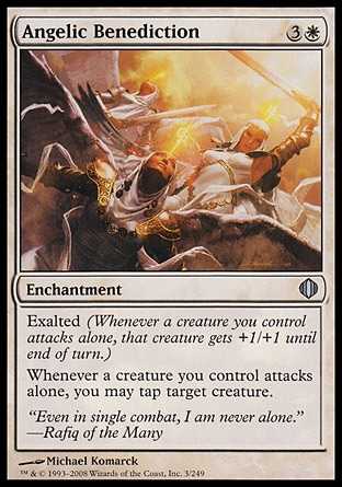 | Card Text | Exalted (Whenever a creature you control attacks alone, that creature gets +1/+1 until end of turn.) Whenever a creature you control attacks alone, you may tap target creature. |