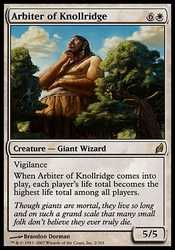 | Card Text | Vigilance When Arbiter of Knollridge enters the battlefield, each player"s life total becomes the highest life total among all players. |