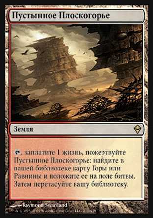 | Card Text | , Pay 1 life, Sacrifice Arid Mesa: Search your library for a Mountain or Plains card and put it onto the battlefield. Then shuffle your library. |