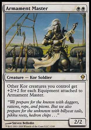 | Card Text | Other Kor creatures you control get +2/+2 for each Equipment attached to Armament Master. |