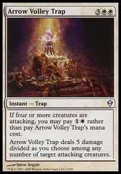 | Card Text | If four or more creatures are attacking, you may pay ![]() rather than pay Arrow Volley Trap"s mana cost.Arrow Volley Trap deals 5 damage divided as you choose among any number of target attacking creatures. |