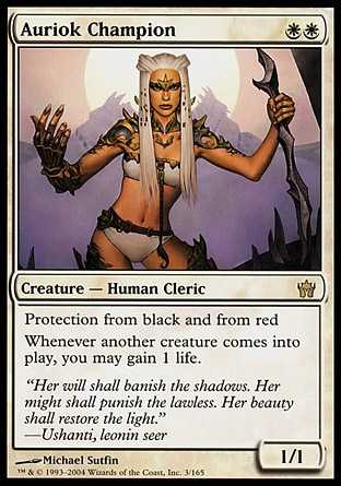 | Card Text | Protection from black and from red Whenever another creature enters the battlefield, you may gain 1 life. |