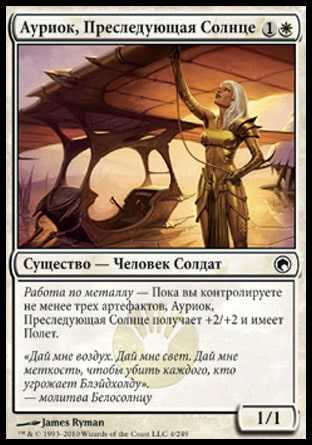 | Card Text | Metalcraft - As long as you control three or more artifacts, Auriok Sunchaser gets +2/+2 and has flying. |