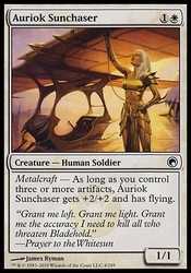 | Card Text | Metalcraft - As long as you control three or more artifacts, Auriok Sunchaser gets +2/+2 and has flying. |