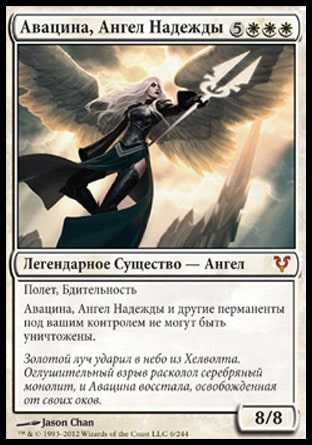 | Flavor | A golden helix streaked skyward from the Helvault. A thunderous explosion shattered the silver monolith and Avacyn emerged, free from her prison at last. |