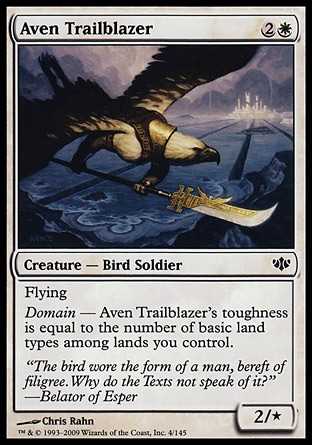 | Card Text | Flying Domain - Aven Trailblazer"s toughness is equal to the number of basic land types among lands you control. |