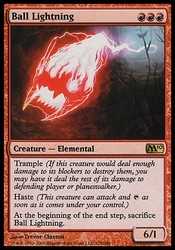 | Card Text | Trample (If this creature would assign enough damage to its blockers to destroy them, you may have it assign the rest of its damage to defending player or planeswalker.) Haste (This creature can attack and At the beginning of the end step, sacrifice Ball Lightning. |