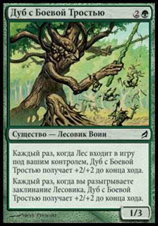 | Card Text | Whenever a Forest enters the battlefield under your control, Battlewand Oak gets +2/+2 until end of turn. Whenever you cast a Treefolk spell, Battlewand Oak gets +2/+2 until end of turn. |