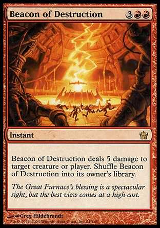 | Card Text | Beacon of Destruction deals 5 damage to target creature or player. Shuffle Beacon of Destruction into its owner"s library. |