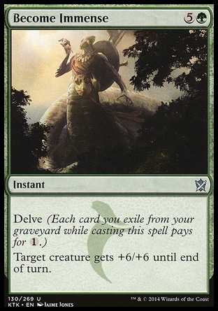 | Card Text | Delve (Each card you exile from your graveyard while casting this spell pays for .)Target creature gets +6/+6 until end of turn. |