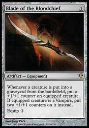 | Card Text | Whenever a creature dies, put a +1/+1 counter on equipped creature. If equipped creature is a Vampire, put two +1/+1 counters on it instead. Equip |