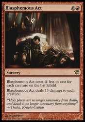 | Card Text | Blasphemous Act costs less to cast for each creature on the battlefield.Blasphemous Act deals 13 damage to each creature. |