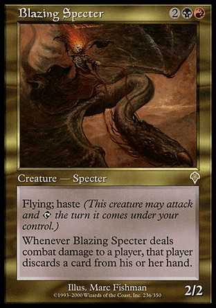Whenever Blazing Specter deals combat damage to a player, that player discards a card.