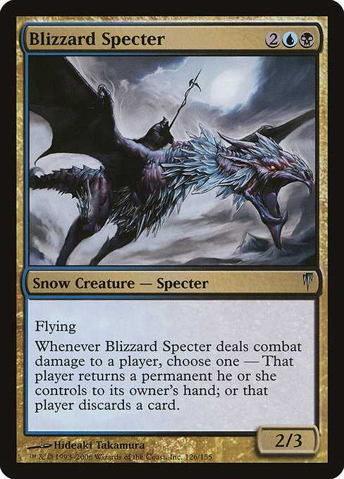 | Card Text | Flying Whenever Blizzard Specter deals combat damage to a player, choose one - • That player returns a permanent he or she controls to its owner"s hand.. • That player discards a card. |