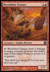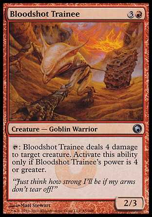 Card Text: Bloodshot Trainee deals 4 damage to target creature. Activate this ability only if Bloodshot Trainee"s power is 4 or greater.