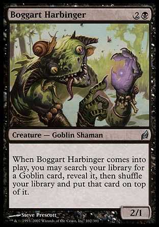 | Card Text | When Boggart Harbinger enters the battlefield, you may search your library for a Goblin card, reveal it, then shuffle your library and put that card on top of it. |