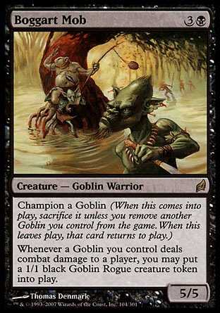 | Card Text | Champion a Goblin (When this enters the battlefield, sacrifice it unless you exile another Goblin you control. When this leaves the battlefield, that card returns to the battlefield.) Whenever a Goblin you control deals combat damage to a player, you may put a 1/1 black Goblin Rogue creature token onto the battlefield. |