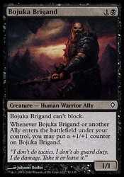 Whenever Bojuka Brigand or another Ally enters the battlefield under your control, you may put a +1/+1 counter on Bojuka Brigand.