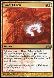 | Card Text | Choose one - • Boros Charm deals 4 damage to target player. • Permanents you control gain indestructible until end of turn. • Target creature gains double strike until end of turn. |