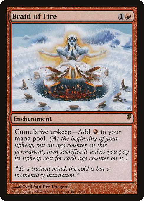Card TextCumulative upkeep-Add to your mana pool. (At the beginning of your upkeep, put an age counter on this permanent, then sacrifice it unless you pay its upkeep cost for each age counter on it.)