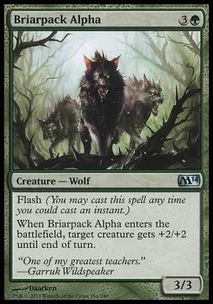 | Card Text | Flash (You may cast this spell any time you could cast an instant.) When Briarpack Alpha enters the battlefield, target creature gets +2/+2 until end of turn. |
