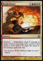 | Card Text | Radiance - Brightflame deals X damage to target creature and each other creature that shares a color with it. You gain life equal to the damage dealt this way. |