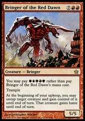 | Card Text | You may pay ![]() ![]() ![]() ![]() rather than pay Bringer of the Red Dawn"s mana cost.Trample At the beginning of your upkeep, you may untap target creature and gain control of it until end of turn. That creature gains haste until end of turn. |