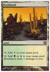 to your mana pool. Brushland deals 1 damage to you.