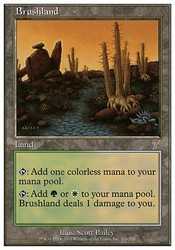 to your mana pool. Brushland deals 1 damage to you.