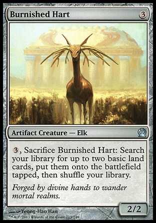 | Card Text | , Sacrifice Burnished Hart: Search your library for up to two basic land cards, put them onto the battlefield tapped, then shuffle your library. |