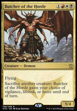| Card Text | Flying Sacrifice another creature: Butcher of the Horde gains your choice of vigilance, lifelink, or haste until end of turn. |