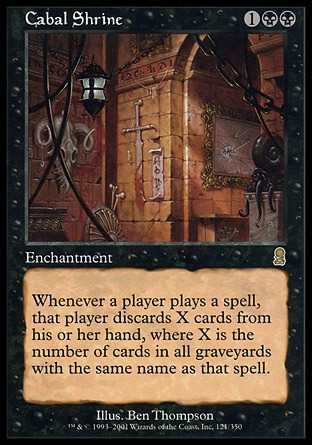 Card TextWhenever a player casts a spell, that player discards X cards, where X is the number of cards in all graveyards with the same name as that spell.