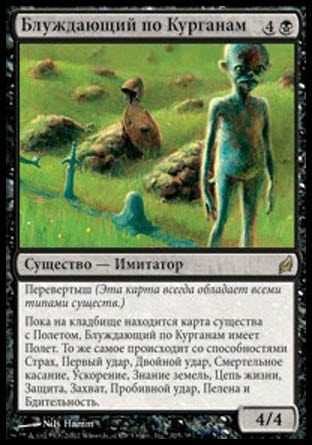 | Card Text | Changeling (This card is every creature type at all times.) As long as a creature card with flying is in a graveyard, Cairn Wanderer has flying. The same is true for fear, first strike, double strike, deathtouch, haste, landwalk, lifelink, protection, reach, trample, shroud, and vigilance. |