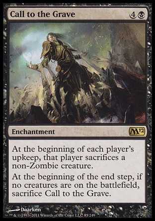 | Card Text | At the beginning of each player"s upkeep, that player sacrifices a non-Zombie creature. At the beginning of the end step, if no creatures are on the battlefield, sacrifice Call to the Grave. |