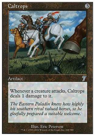 Card TextWhenever a creature attacks, Caltrops deals 1 damage to it.