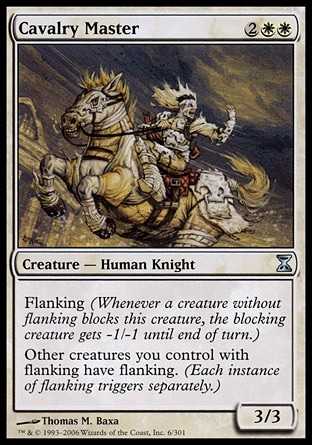 | Card Text | Flanking (Whenever a creature without flanking blocks this creature, the blocking creature gets -1/-1 until end of turn.) Other creatures you control with flanking have flanking. (Each instance of flanking triggers separately.) |