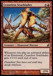 Card TextWhenever you activate an ability of an Elemental, Ceaseless Searblades gets +1/+0 until end of turn.