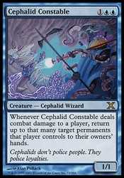 | Card Text | Whenever Cephalid Constable deals combat damage to a player, return up to that many target permanents that player controls to their owners" hands. |