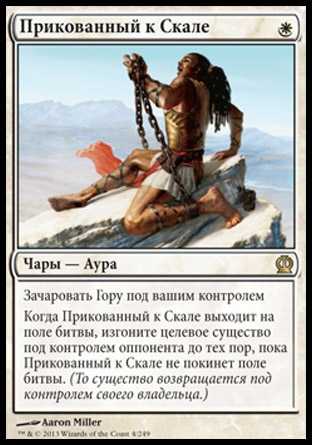 When Chained to the Rocks enters the battlefield, exile target creature an opponent controls until Chained to the Rocks leaves the battlefield. (That creature returns under its owner"s control.)