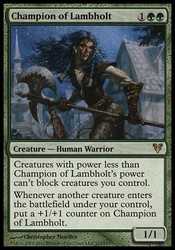 Card TextCreatures with power less than Champion of Lambholt"s power can"t block creatures you control.